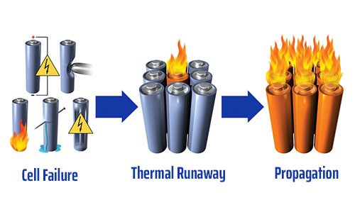 Thermal runaway propagation is a critical phenomenon to consider when designing a safe battery pack. It refers to the event of a single cell entering a thermal runaway that releases a large quantity of heat which heats ups neighboring cells to the point of thermal runaway. This phenomenon starts a chain reaction that eventually destroys all cells in a battery pack.